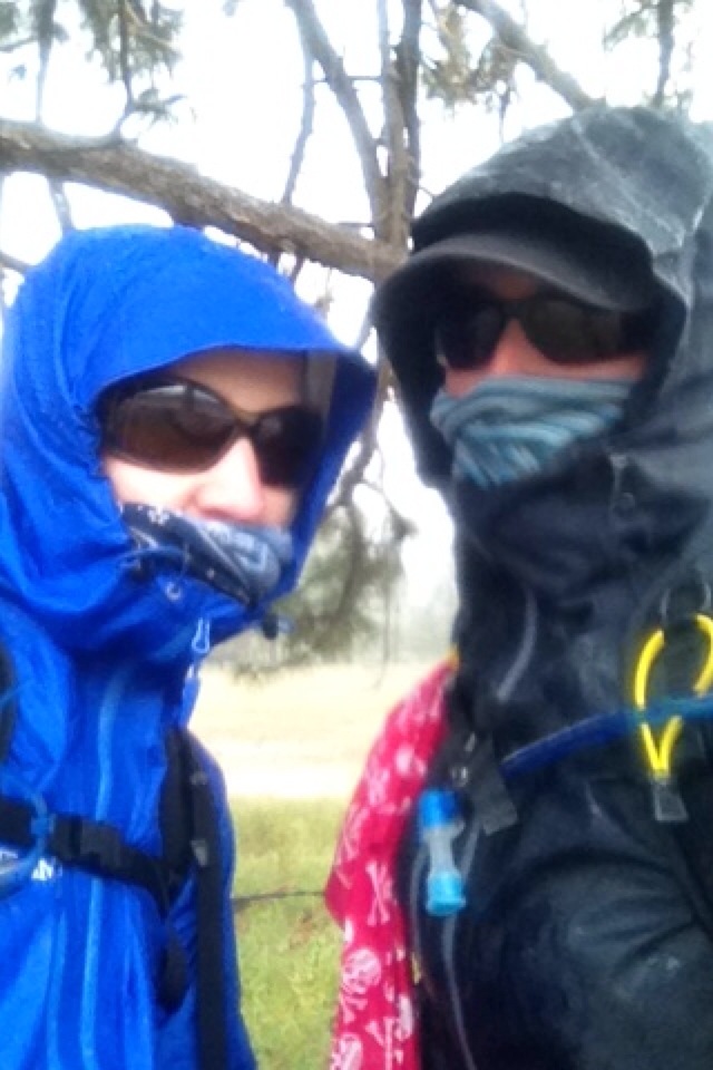 At first road walking is novel. But after a few hours, begins to drizzle and then pour. And the wind is back and we pull our buffs over our faces, rain dripping from everywhere, soaking through gloves and filling our breathable mesh shoes until each step goes sploosh sploosh as if walking through a stream.