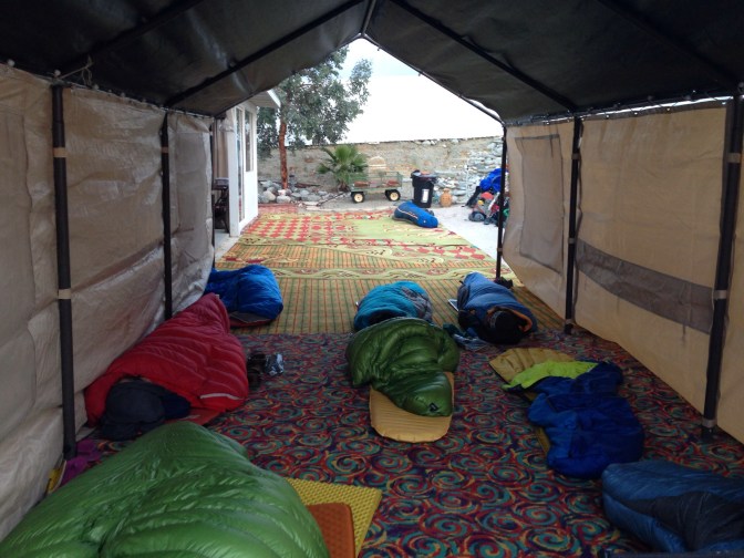 Only 5 miles to Ziggy and the Bear’s, long time trail angels, hosting hikers for 18 years and counting. They even purposely bought a house near the trail. A crazy slog in loose sand along and finally under train tracks and the I10. It seems harder than yesterday’s snow, longer the the interminable switchbacks. I walk with Grey, we keep looking back at he peak, covered again I clouds that somehow we were above less than a day ago.