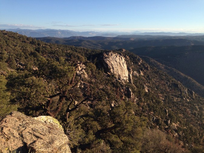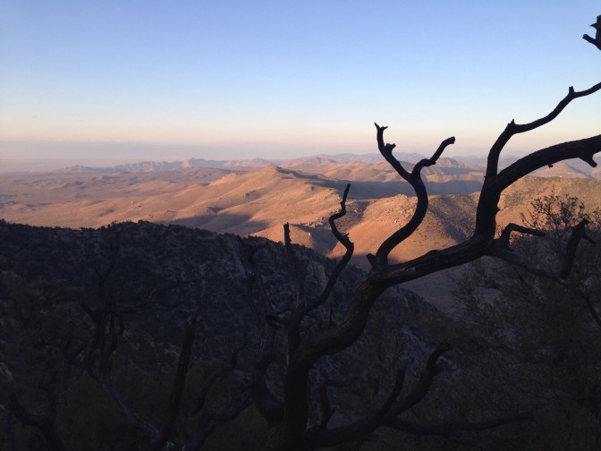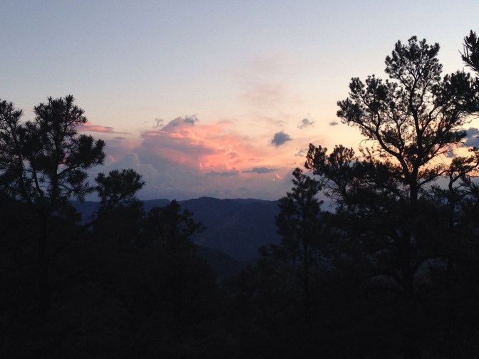 I pack quickly and am soon on trail, my earliest morning yet, and Chef is not far behind. The view is spectacular with the rain-rinsed sky and the sun lighting up a few remaining clouds. The trail follows the ridge, the expanse of desert out one side so vast I can’t imagine how I have walked here; and green tree covered hills, the Sierra out the other. Past and future on display.