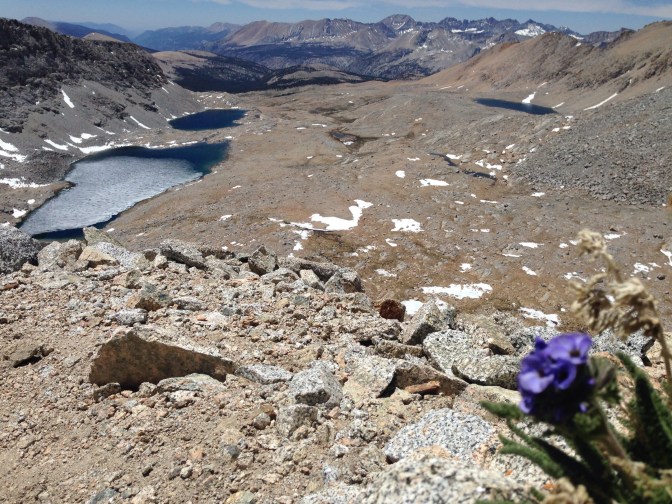 I pause at a stream below the pass, a place where I stopped for a break last year. I don’t have regrets about repeating this section, in all its rugged glory, but I have been feeling lonely today. Having skipped Mount Whitney, I am ahead of the gang, many of whom I have not seen since Kennedy meadows, five days ago.