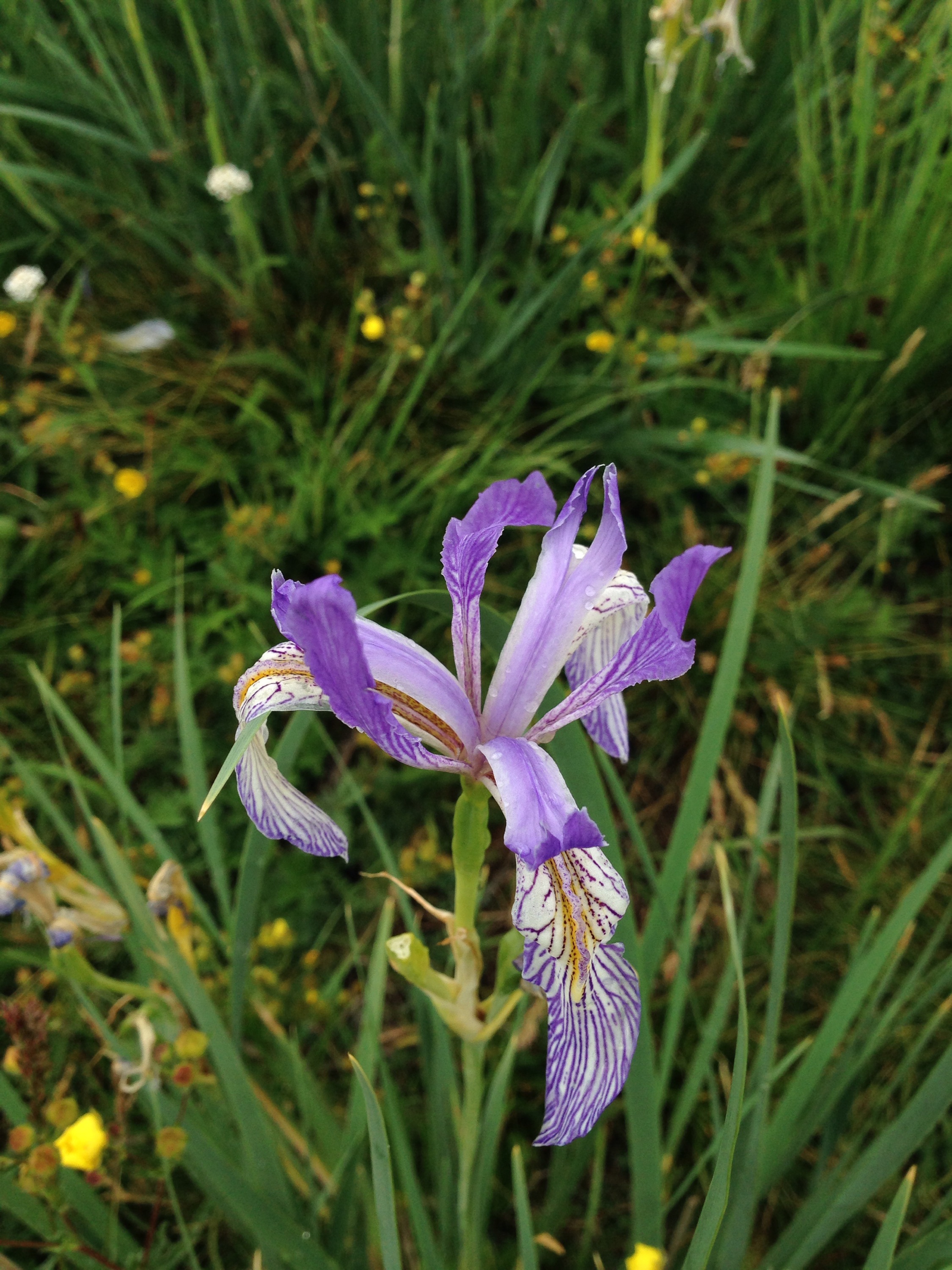 Up over the next ridge, the frist view of Lake Tahoe. And the flowers ever more spectacular. Even more new kinds, a field of purple iris; yellow stars growing on steep volcanic slopes, like nothing I have seen before.