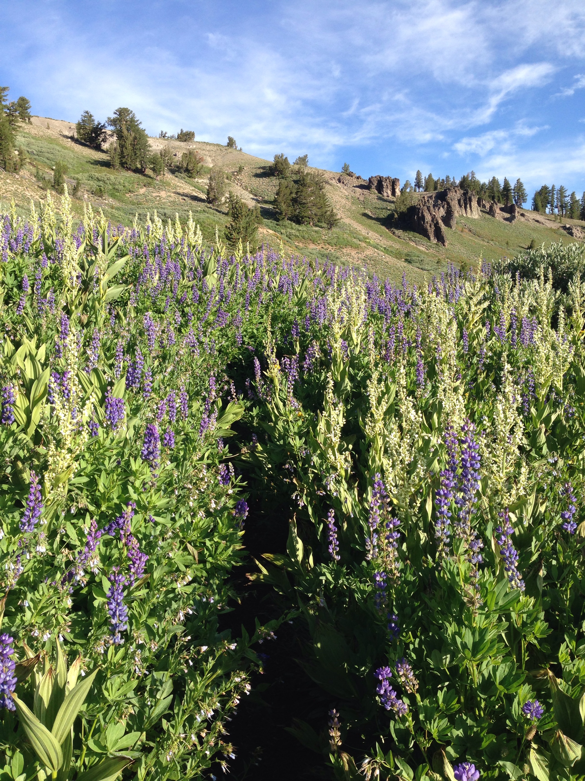 I walk the ‘miracle mile’ of flowers, watching as clouds begin to gather. In the shelter of the porch at the Echo Lake store, I watch as alternating hail and heavy rain pours down from the sky. I pick up my box from the tiny post office window. I am supposed to grab food and head back out this afternoon. But I have a shattered phone, a family crisis, and yet another day of overactive weather to contend with. Hikers just arrived fresh from town are so reluctant to leave in the storm that they head right back to Tahoe for another night. I sit eating kettle chips and a whole container of humus trying to sort through food for the next leg. I can’t focus. I am shivering in the cold despite being dry. Dry except for the tears now running down my face.