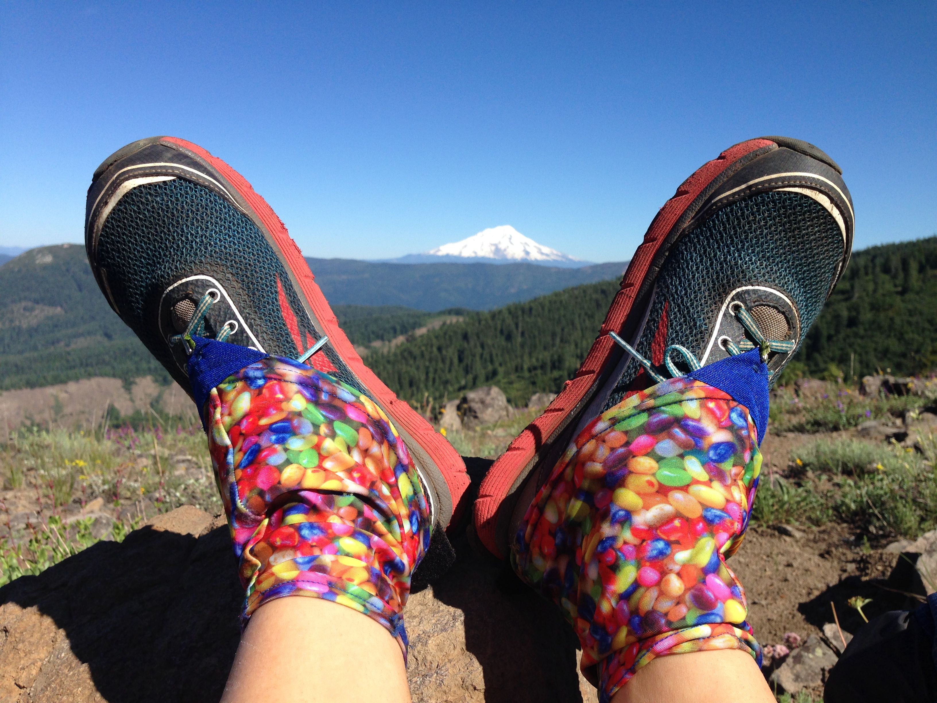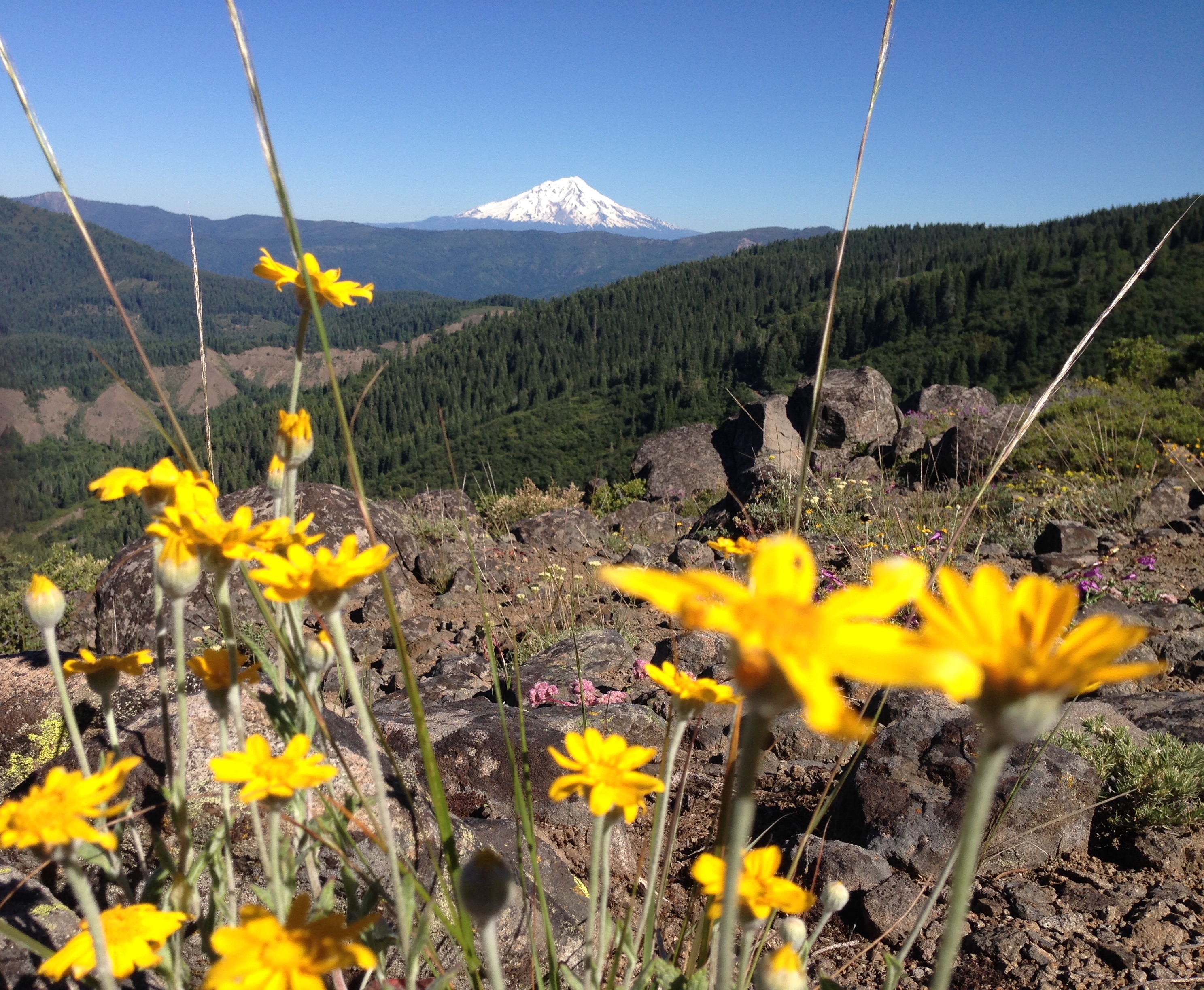I do my best to go slow, pausing to look at butterflies, to admire the many flowers (paintbrush, purple and yellow lupine, entire meadows of red columbine, orange Sierra lilies, meadow larkspur and many others I have no hope of naming from memory). Shasta is on the horizon too, looming large and brilliant white, the perfect excuse to put my feet up for a while.