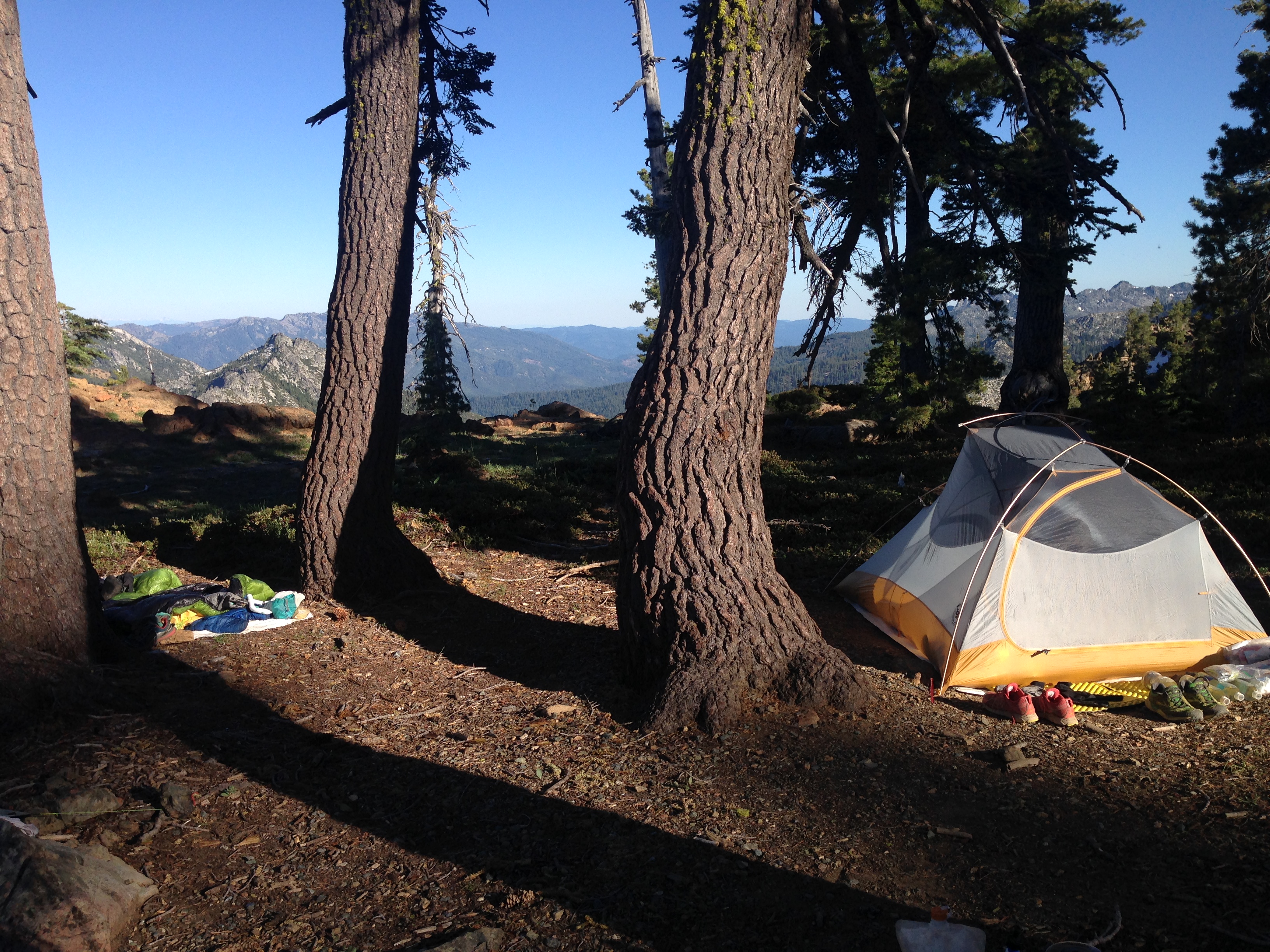 I’m writing this from my perch on a craggy point high up in the Trinity Alps. Layer upon layer of ridges, gently ragged like torn construction paper, fade off in the distance until they are too delicate for my camera to understand.