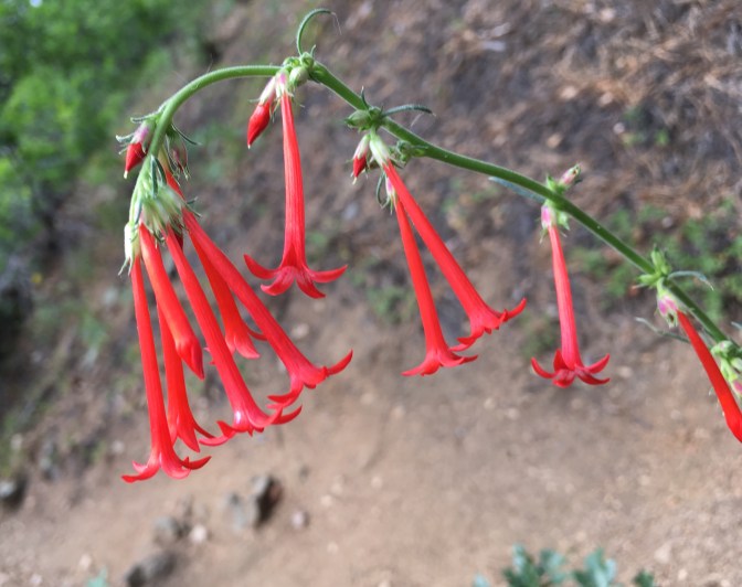 We stop for a “proper” lunch (read handfuls of various snack foods) at Bear Creek, which is still running well and clear at the main crossing. But, after carrying a few litres of water another mile up a steep hill, we discover that the seasonal upper creek is also still running – right across the trail in three places -further up as well. Yay for bonus water carries!?