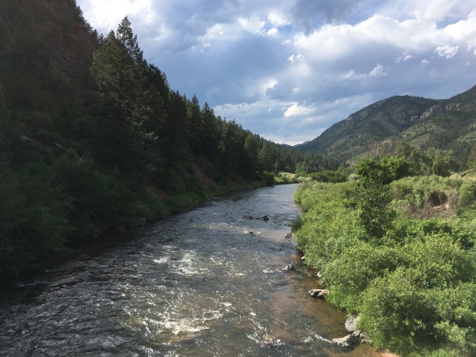 It’s only four hours in to day one, but talk has drifted to town days. Here I am planning to eat eggs and spinach in six days. Mostly though, it’s generous switchbacks both up and down, and with our steady pace, segment one turns out to be not so hard. At 4:30 we reach the campsites just above the South Platt river. They are already mostly occupied and the spaces left are not so flat or welcoming. And there’s word that the pit toilet is a poo- smeared trash filled disaster. I cannot confirm this as I was unwilling to investigate.