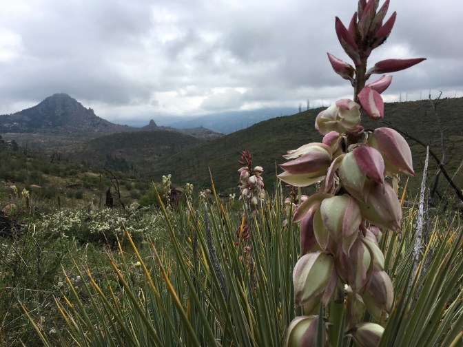 Despite the general wetness, there’s ironically no actual water to be had up here on the ridges and through the burn areas, even early in the season. We meet several hikers completely out of water with five miles to go. Steph kindly gives a half liter to a women who has been out since last night. She even tried putting her pot out in the storm to catch raindrops!