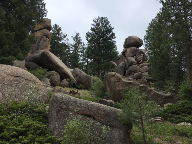 The results are positive. A few hours later I happily start noticing other more expected feelings. Like generally tired feet and the chafing reminder that yes, I do have thighs, a sure sign than the tendon problem is much improved because in general you only notice whatever hurts the most. And with (most of) my suffering contained, I return to noticing the scenery which has shifted to gentle forest punctuated with curious rock formations that seem transplanted here from some alien ecosystem.