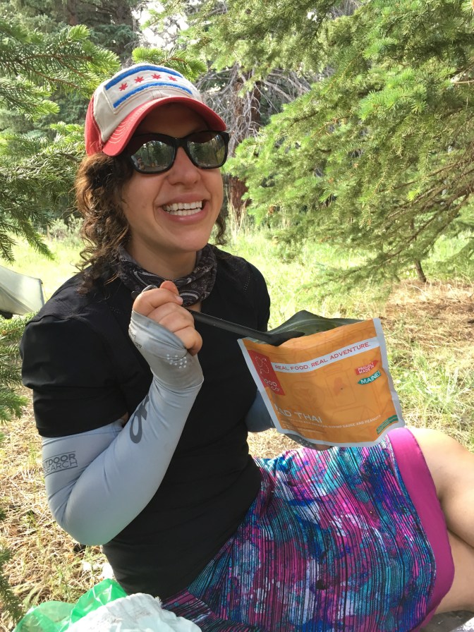In other news, Steph’s friend Erin who lives in Denver started at segment three today, hoping to catch us at camp. But she’s still not here. We expect that she was wooed by the lovely creekside sites a few miles back, just before the start of what is a very long climb. We took a long break at the creek and totally understand its allure. But there’s always tomorrow. Tomorrow when we will wake to keep climbing this mountain of a hill. Tomorrow when we will top out near 11,000 feet. Tomorrow, after a good sleep.
