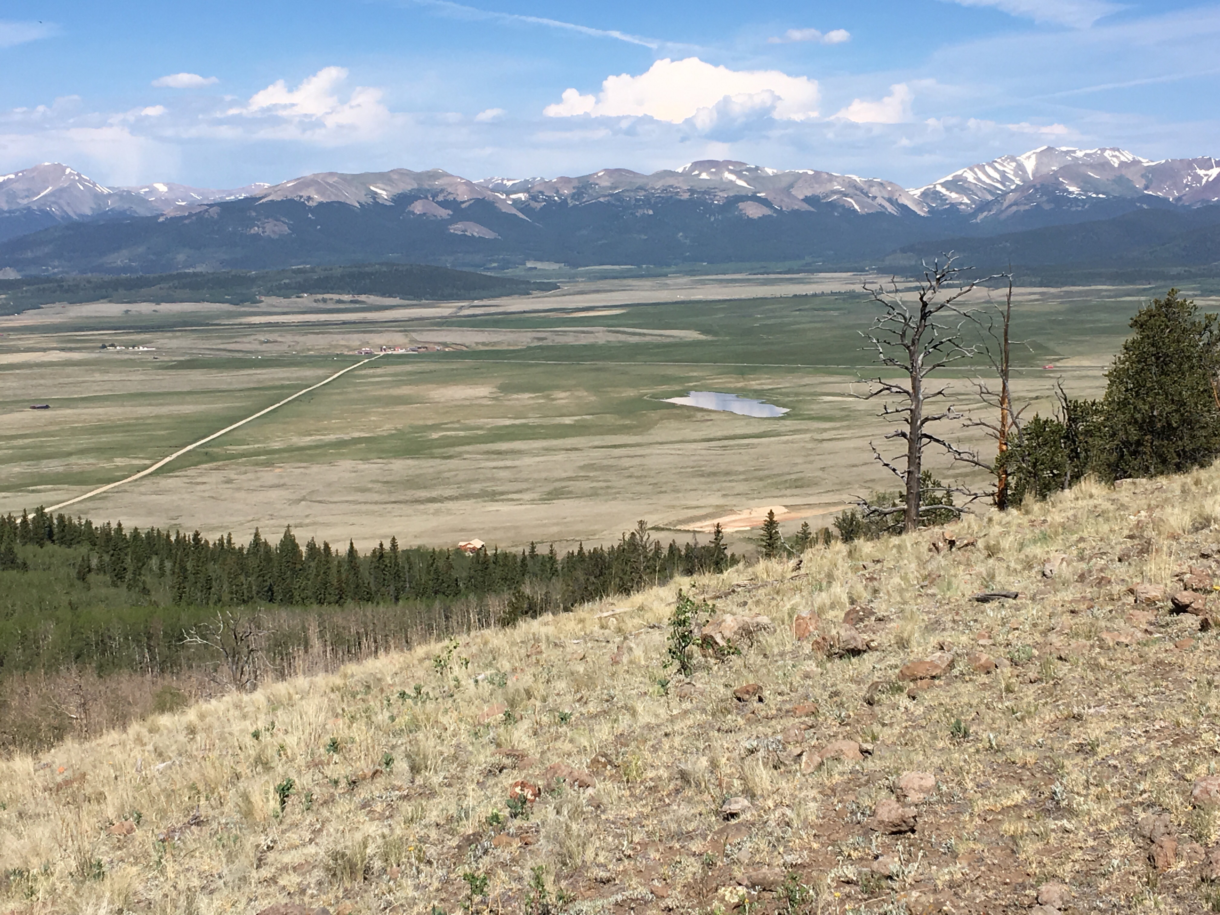 The second half of segment 5 continues to impress. We curve up and around a series of hills that alternate between forest shade and grassy Meadows with stunning views of the still-snowy continental divide which we will finally reach tomorrow.