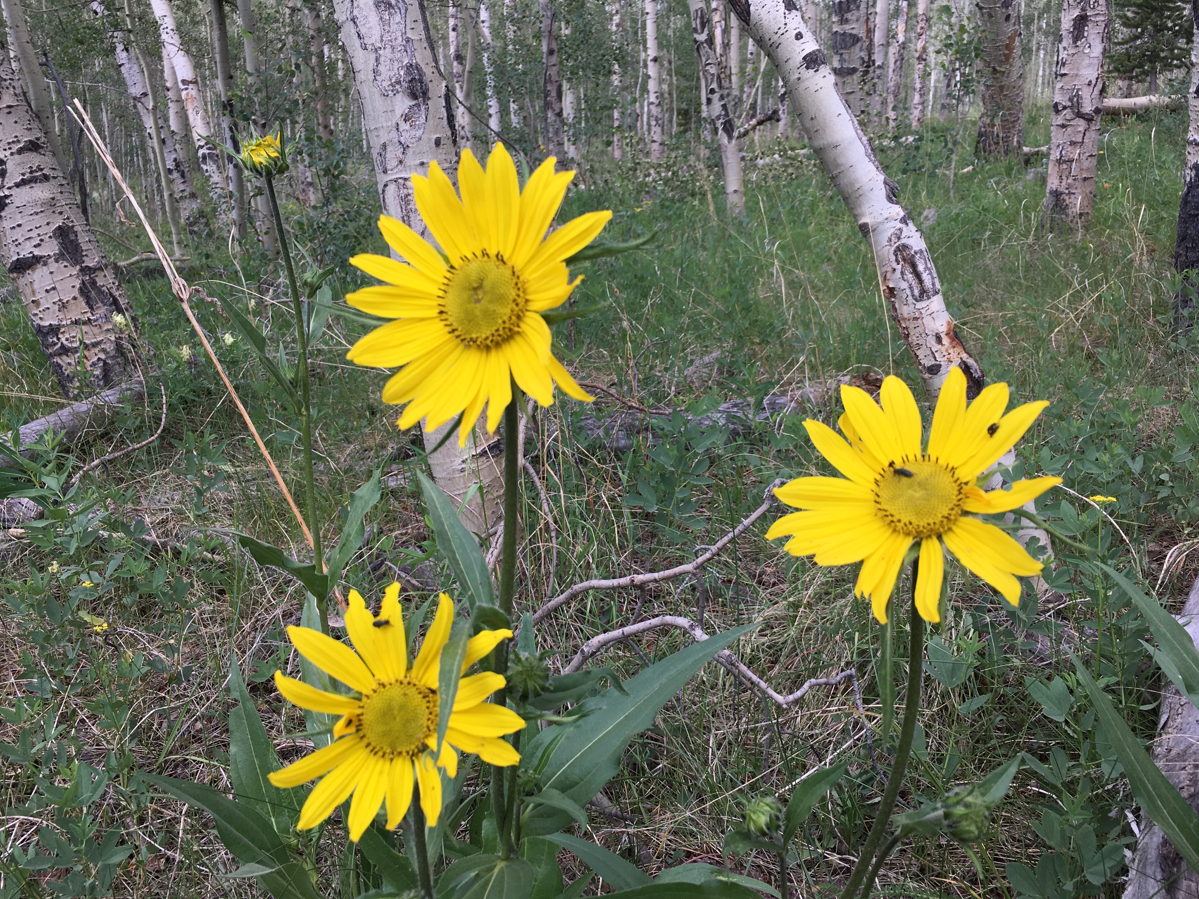 And of course the thunder clouds are gathering. By the time we stop for lunch among the aspen at the pretty Guernsey creek, the sky has darkened, the wind kicked up and all signs point to a downpour. A local car camper (with a massive tent-shelter we were admittedly hoping he would offer us to hide under) assured us that he though it would all blow over without raining on us. I have to admit I was rather skeptical, but he was right! After a few tiny sprinkles the sky lightened and was well.