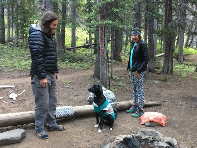 We join forces, talking our way through what can be slumpy afternoon miles, winding up forest slopes until we all decide to stop just this side of the pass. Partly because the dark clouds are still hovering and there’s thunder in the not-so-distance. Partly because it sets us up well for tomorrow to camp just short of Breckenridge instead of spending more money on accommodations in town. And partly because of the great company. Though I am feeling pretty strong still, getting to camp before 5 is a welcome luxury after a series of long days.