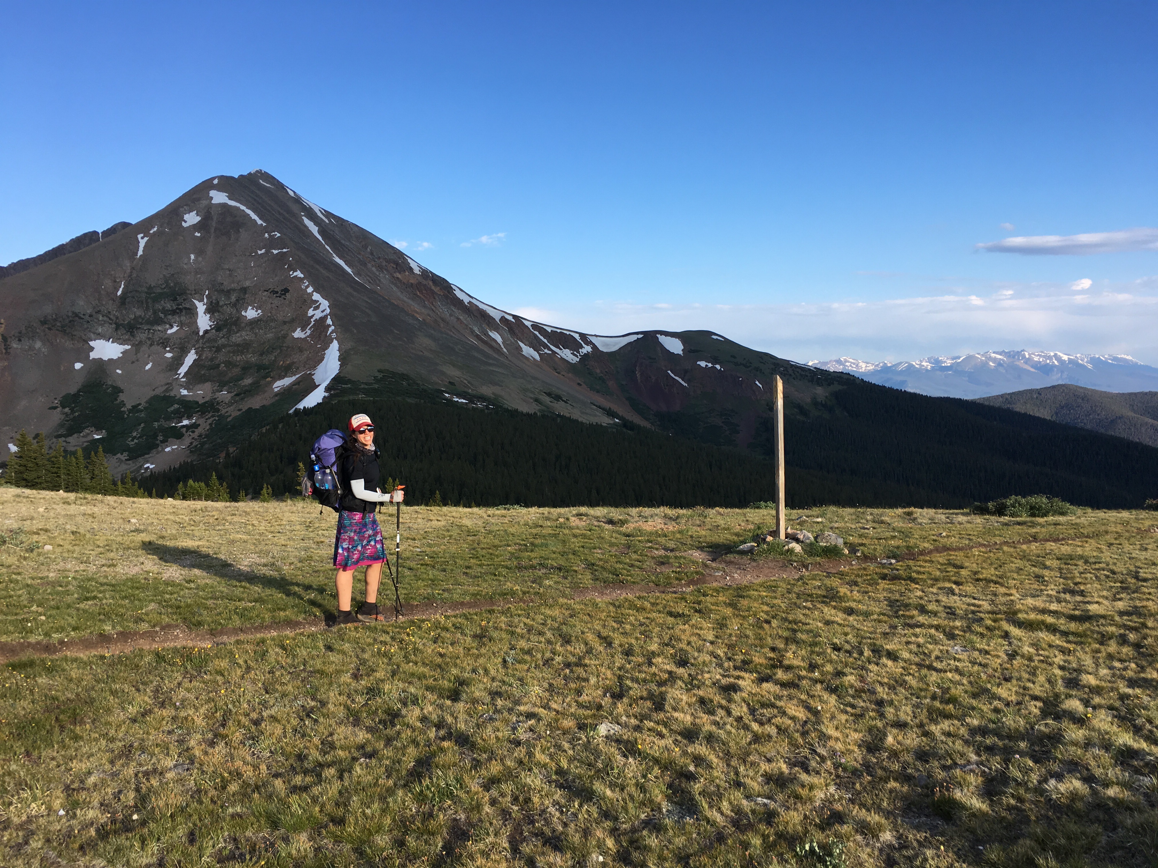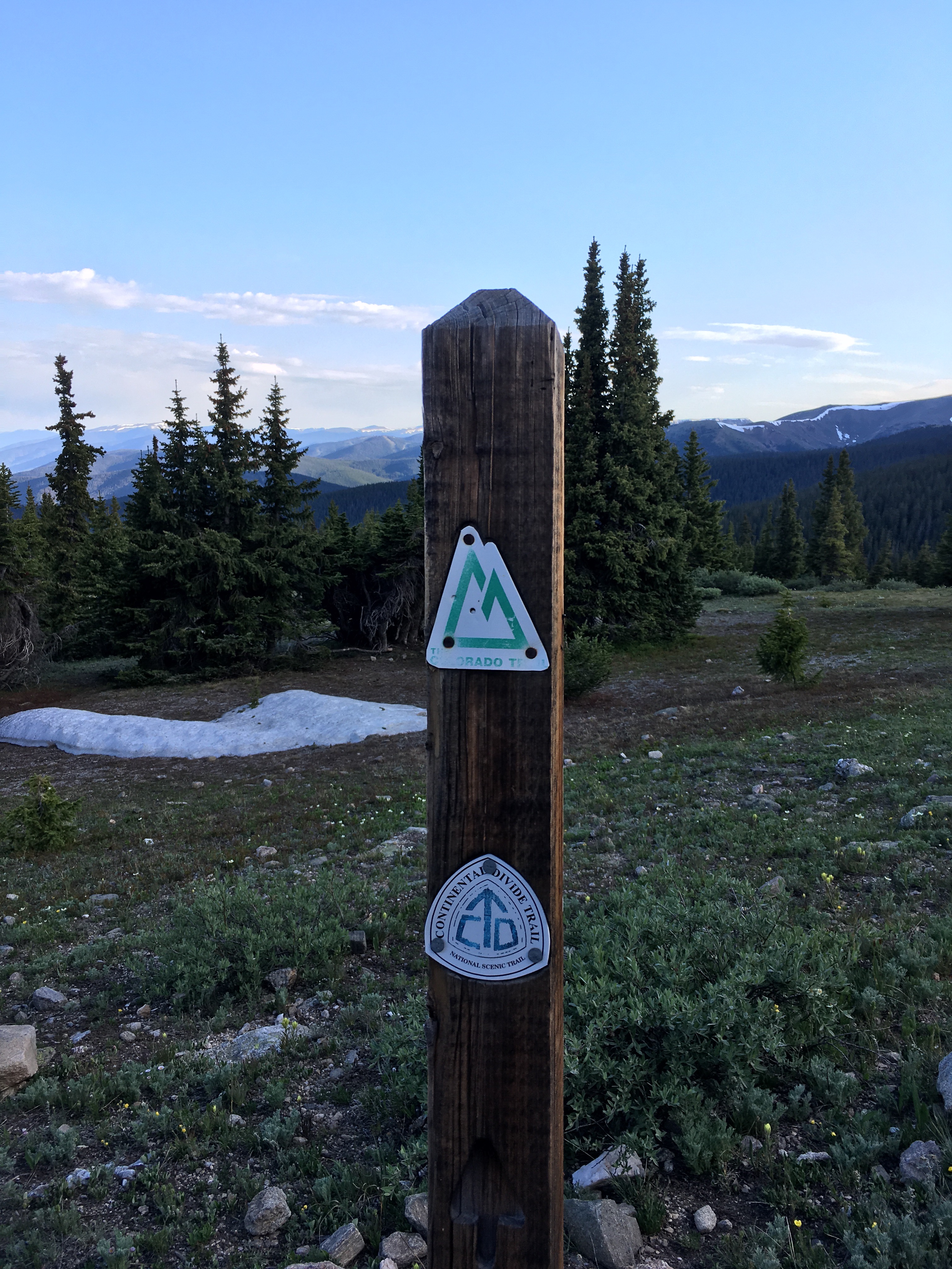 We snap photos on the pass just as a big dark cloud hides the morning sun. Clouds have moved in even faster today than the day before. It’s not even 8am. Still it is glorious up here and, mentally, Breckenridge, our first resupply, is all downhill from the pass.