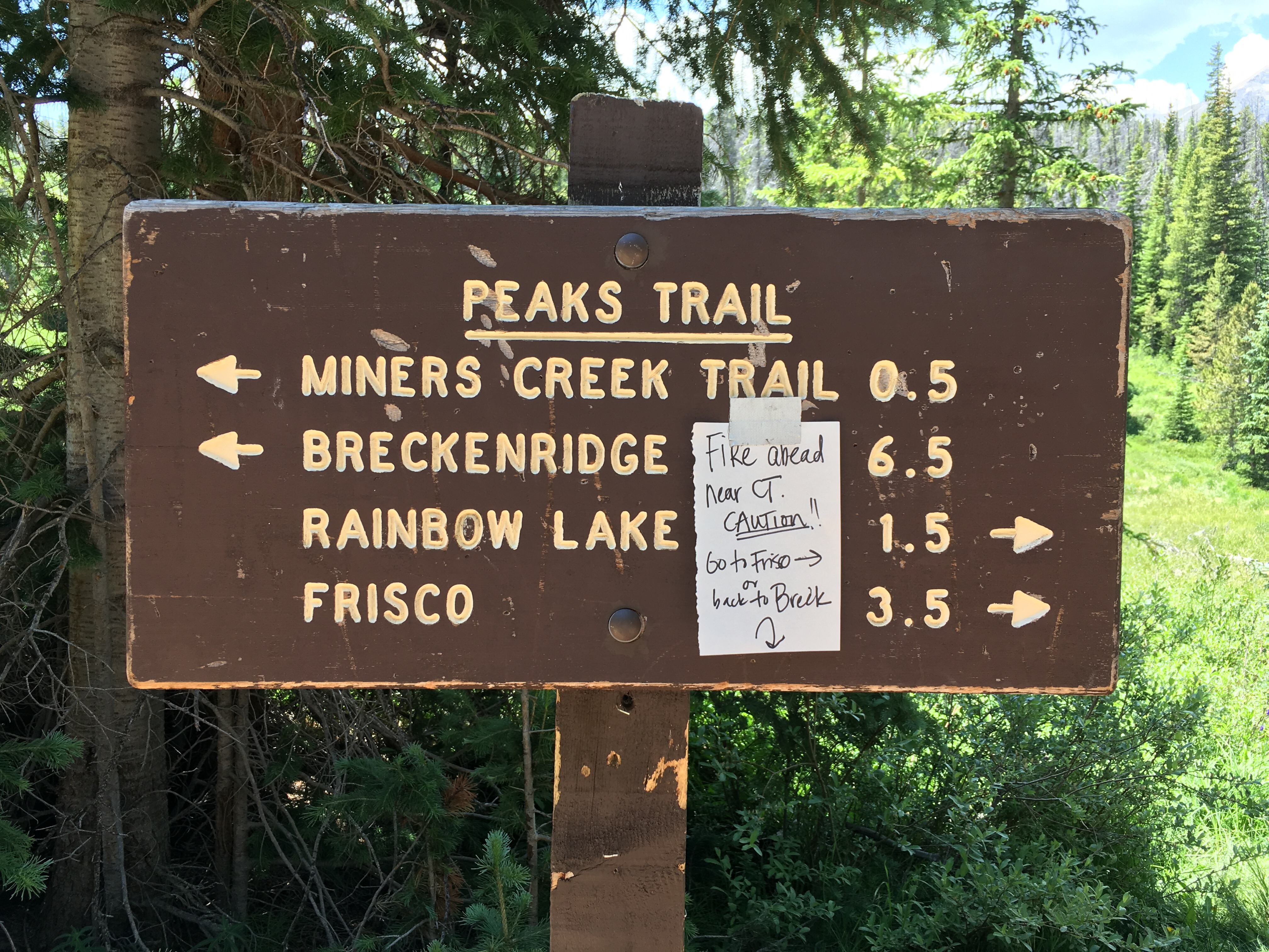 Five miles up there trail, there’s a guy who has made a freaking campfire. We go over to “chat” and, as politely as we can, make sure he knows Breckenridge is on evacuation alert and that the rangers have been asking people where they camped and if they made fires. Is there actually a ban he asks? Does it even matter, I think to myself. We are breathing smoke from a wildfire (and yes, there was a total county fire ban). It is just Too Soon!