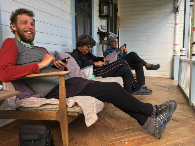 The room is in a massive old farmhouse, with narrow stairs and a dark wood paneled parlor. Occupying another room are two more German CDT hikers, the kind and generous Walkabout and Skipper. The house has a kitchen with a mishmash of new and old stoves and furniture and spices (mostly old) where I eat hiker box rice and lentils from ancient chipped china. The rice is organic but also the kind you reheat in the plastic pouch. It seems like these might cancel each other out? There are fifteen identical packages in the free box at the store. Who left them? Why did they have so many?
