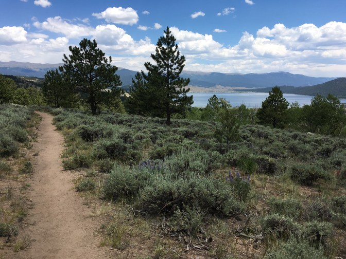 We’re following the official CT here, a stretch that many shortcut because the trail makes a massive elongated side loop, circumnavigating the lakes. We are on the sunny, dry side, all shadeless and sage, and it feels like the desert.