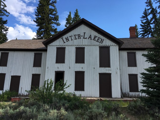 Refreshed and amused, the next miles fly by: across the dam that raises the lake levels in the 1970s; past countless perfect lakeside campsites. We take a tiny detour to a historic site, expecting some derelict building remnants, and can’t believe what is there: Fancy log houses, a six-sided outhouse, and a whole hotel in various stages of restoration. The house is open to visitors, though no one is there. We wander the rooms and marvel at the woodwork.