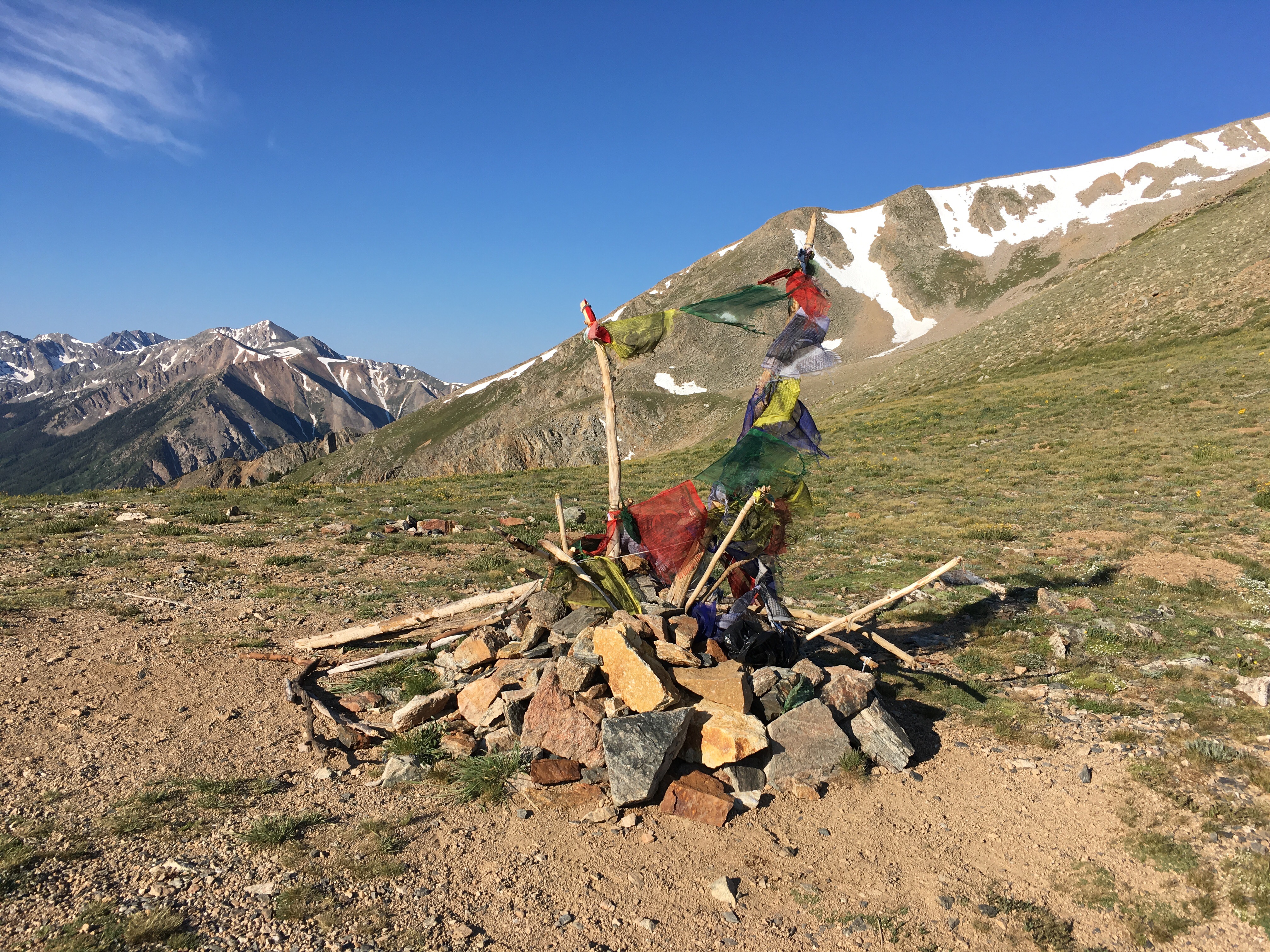 Lake Ann Pass isn’t even our first pass of the day. We went over Hope Pass early this morning, back when the skies were clear and the snow patches at non-lethal angles. Hope Pass was incredible, with strings of prayer flags and an incredible reveal of snowy peaks as you walk over the top.
