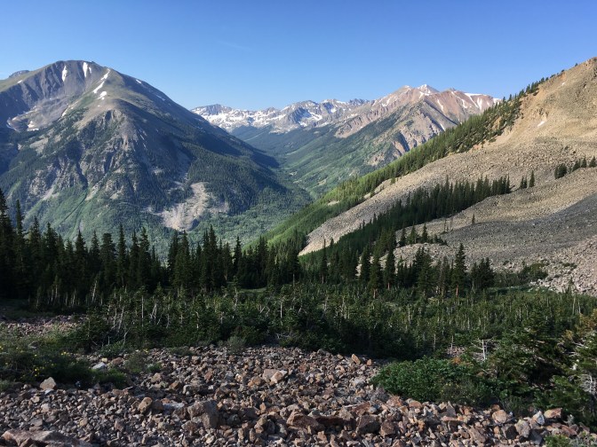 It also has to be one of the steepest climbs on the Colorado Trail, thankfully we had the fortitude to drag ourselves halfway up last night. This didn’t exactly help with the down-side, but the views were new and kept opening up into ever more striking vistas.