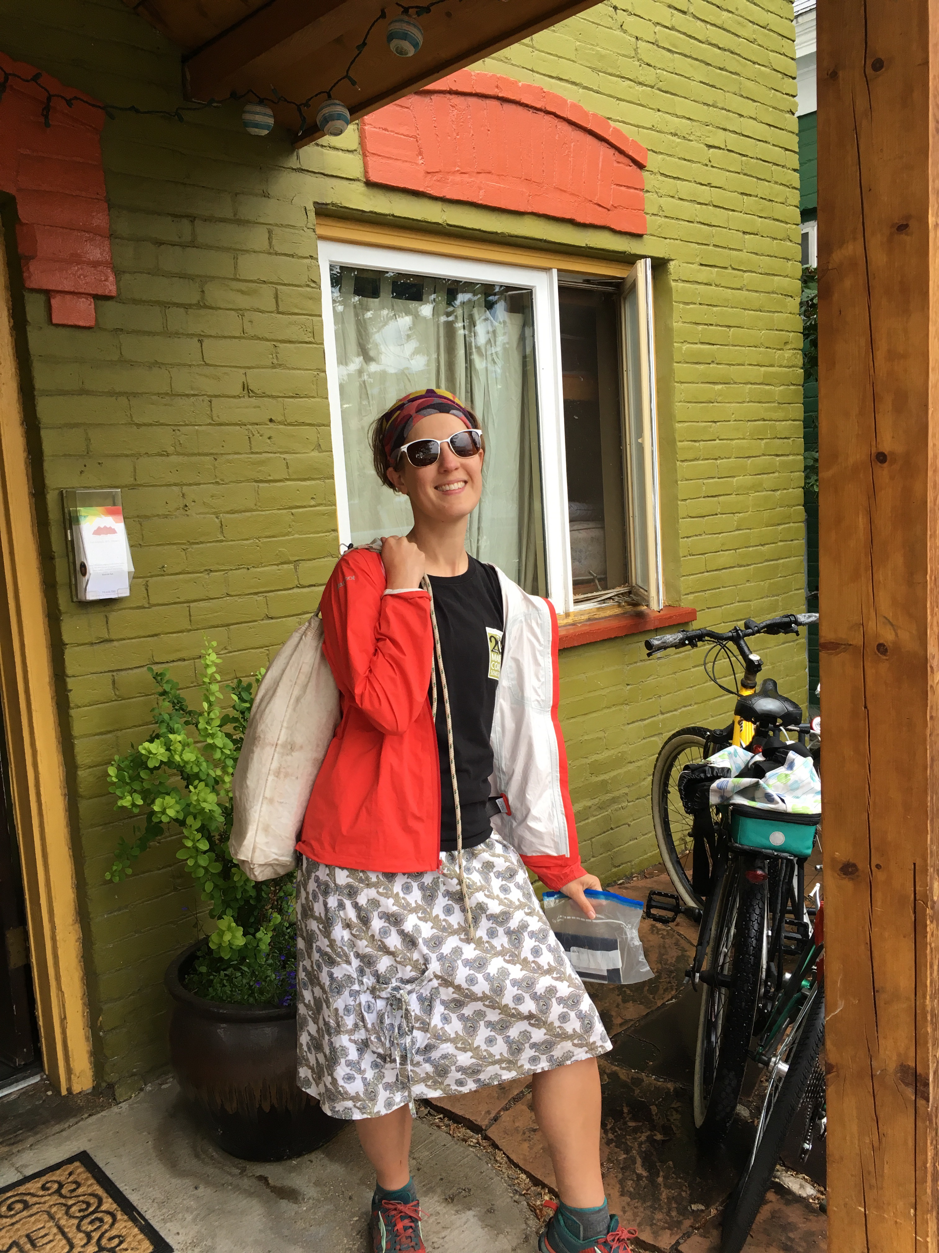 Oh town mornings on a true zero! Sleeping in. Blogging in bed. Making a perfect toasted breakfast bagel with hummus, spinach and artfully arranged avocado. The joy of cotton clothes and walking around in a ridiculous town outfit that consists of the following: white flowered dress worn as a skirt; marine conservation t-shirt; and men’s fruit of the loom boxer briefs size large, pulled brand new from a package in the hiker box. All the girls are wearing them these days. There’s a bit of a back up with the laundry, you see, and we have tired of sitting around commando in skirts among the city crowd.