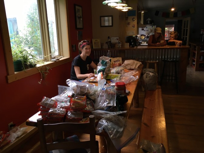I buy my resupply from Safeway, (just three easy blocks from the Simple Hostel = best trail town ever) where I find vegan cream cheese and organic tortilla chips and instant re-fried beans to pack out. And a pint of dairy free Ben and Jerrys and fresh veggies to eat in.We have grand plans with CDT friends, Glimmer and Arcade, and 14er hiker Gazelle: my first time paying Cards Against Humanity. Which turns out to be equal parts offensive and hilarious, and to go oh so very well with beer and new friends and a pint of ice cream.