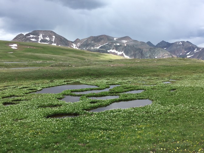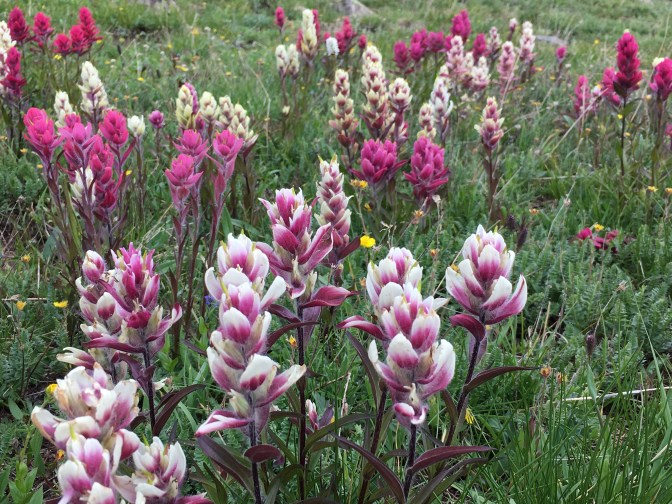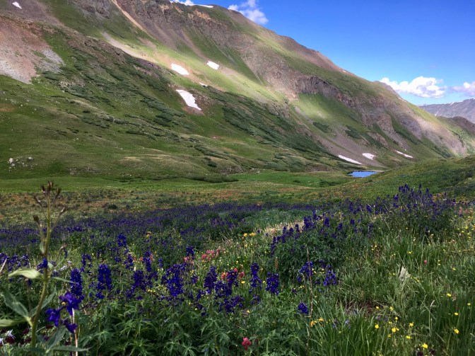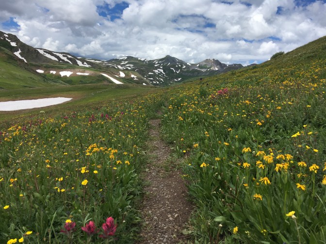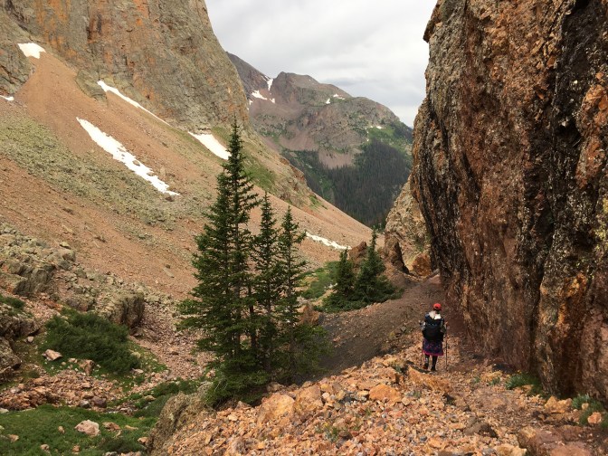 We cross the train tracks and the Animas river before climbing up and up some more to camp a smidgeon shy of the official Molas Lake campground. Finally, an almost entire day of hiking without rain jackets, without wet feet, without cooking dinner in the vestibule. It’s enough to make me want to hike all 3,000 miles of the Continental Divide Trail. I try to remember a night we have not been rained on while camping and can only come up a single instance way back on Day 3.