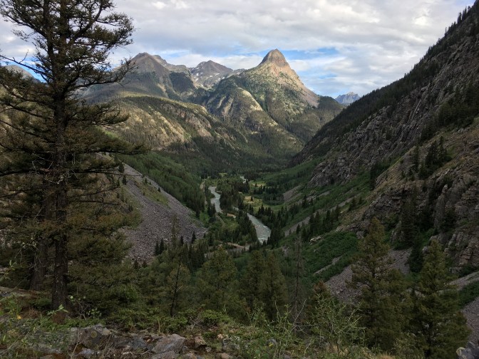 We cross the train tracks and the Animas river before climbing up and up some more to camp a smidgeon shy of the official Molas Lake campground. Finally, an almost entire day of hiking without rain jackets, without wet feet, without cooking dinner in the vestibule. It’s enough to make me want to hike all 3,000 miles of the Continental Divide Trail. I try to remember a night we have not been rained on while camping and can only come up a single instance way back on Day 3.