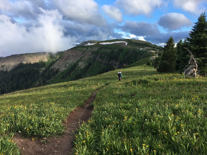 And then, well above the tree line with nowhere to go but forward, I hear thunder in the distance. Right at the start of the biggest climb, heading toward the double high point of the day. At first I half laugh as it always seems to thunder when I have to cross something exposed.
