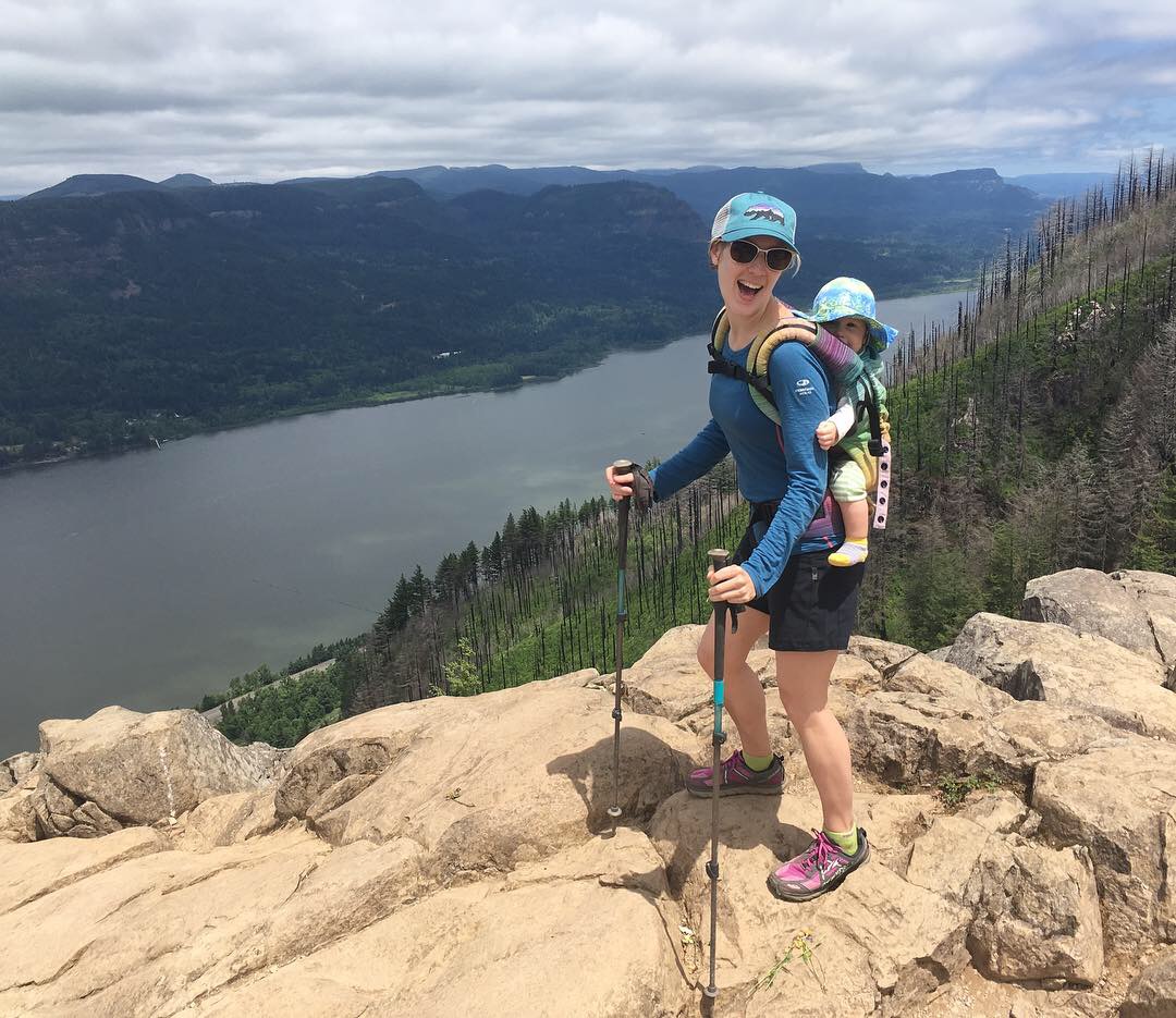 For the first time ever I’ve been training for a hike. Walking hilly Portland trails after dinner. Faithfully repeating the regimen of exercises prescribed by my physical therapist. Carrying baby Jade on my back, first, just up to Council Crest, and then up 1,500 feet to Angel’s rest in the Columbia River Gorge. “She has a BABY!” I hear other hikers exclaim to each other in passing.